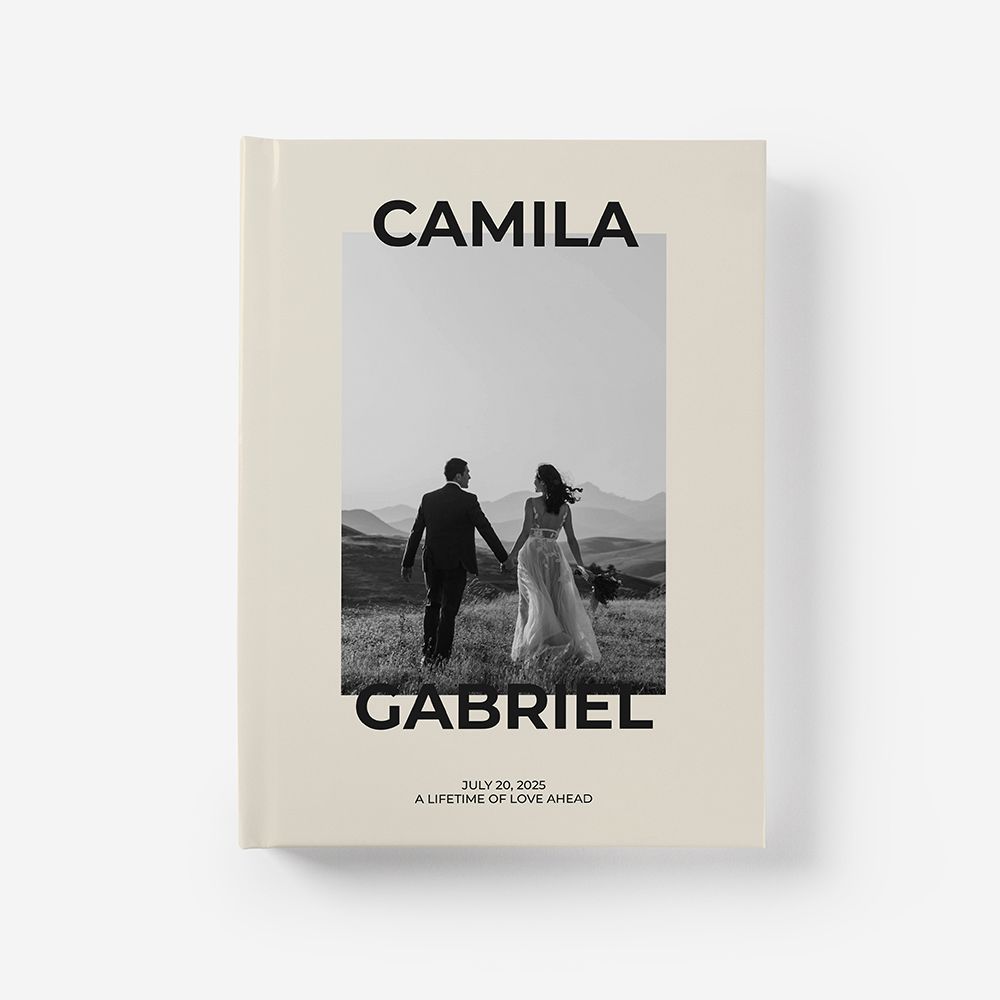 A capa rígida em cartão duro oferece proteção adicional e um acabamento elegante ao teu álbum.