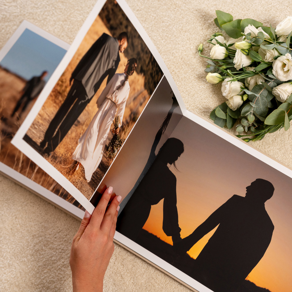 Estes álbuns de fotos foram criados a pensar nas tuas datas mais importantes. Se procuras um álbum de casamento personalizado, a Signature oferece a possibilidade de teres uma capa que já apresenta a história ainda antes da primeira página. Para o álbum de batizado, a personalização com stamping torna-se ideal para marcar o nome e a data do dia. Para um álbum de comunhão, a janela fotográfica do Cameo permite destacar o retrato que melhor representa a celebração. Podes também criar um álbum de fotos de família que junta várias gerações ou um álbum de viagem que guarda cada aventura vivida.