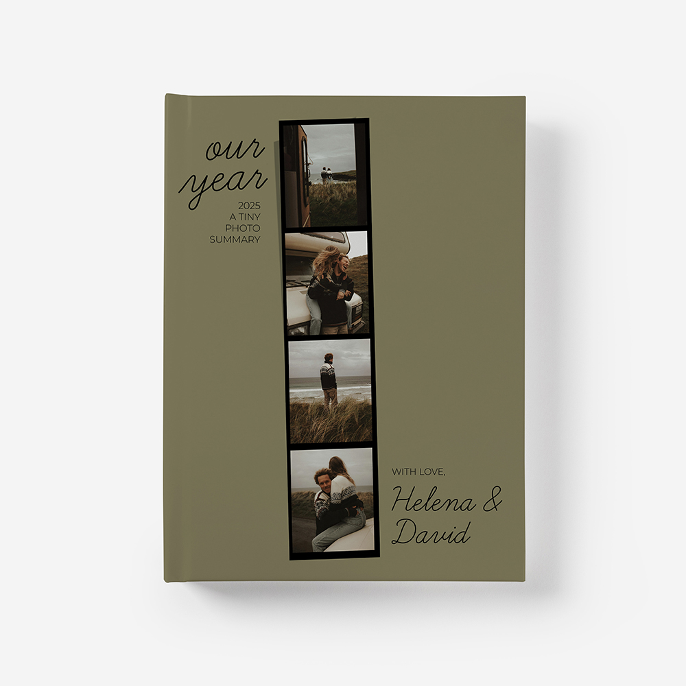 A capa rígida em cartão duro oferece proteção adicional e um acabamento elegante ao teu álbum. Através da sua capa fotográfica, poderás importar fotografias, textos ou cliparts. Se quiseres, poderás ainda replicar a capa do Álbum na Box, criando assim um par perfeito.