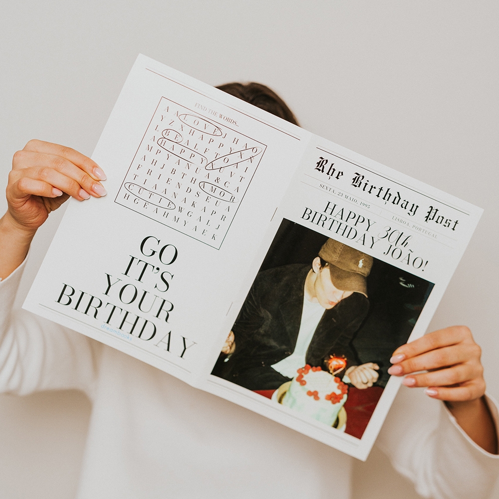 Descobre as nossas Foto Revistas personalizadas, uma forma criativa e emocionante de recordar momentos especiais com estilo de capa de revista. Perfeitas como presente original, ideia de decoração ou lembrança marcante para aniversários, casamentos, festas de finalistas e outros eventos inesquecíveis. Surpreende outras pessoas com uma foto revista única e cheia de personalidade.