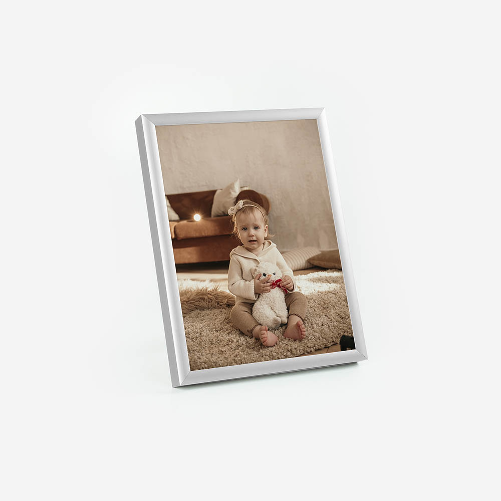 Moldura de alta qualidade, composta por uma estrutura em Alumínio com proteção em vidro, garantindo durabilidade e um acabamento perfeito para destacar as tuas fotos.